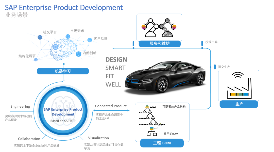 以 SAP EPD 为纽带,形成完整的产品生命周期管理的闭环,缩小需求与产出之间的差距,助力客户进入工业 4.0。